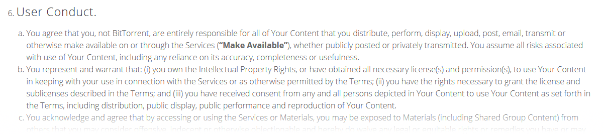 - The developer uploaded this version of the software to a BitTorrent tracker and so, as noted in the terms of BitTorrent copied above, asserted they owned rights to all IP and granted a license to all others to distribute it (the process by which this technology works, allowing everyone who downloads the content to also resend it to others, requires this sort of granting of the right to duplicate, otherwise it wouldn't work).